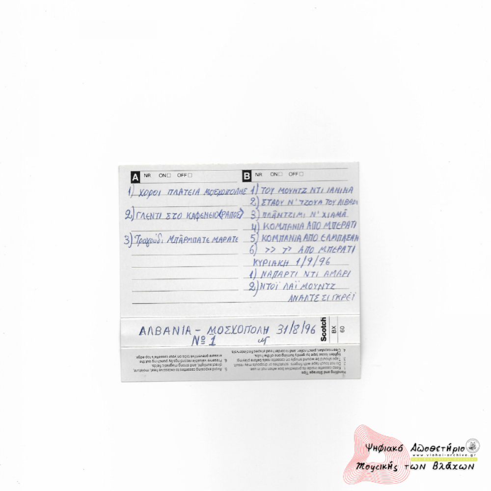 Η κασέτα αναφέρεται στο φεστιβάλ τραγουδιού που διεξήχθη στις 31 Αυγουστου 1996, στη Μοσχόπολη της Αλβανίας.