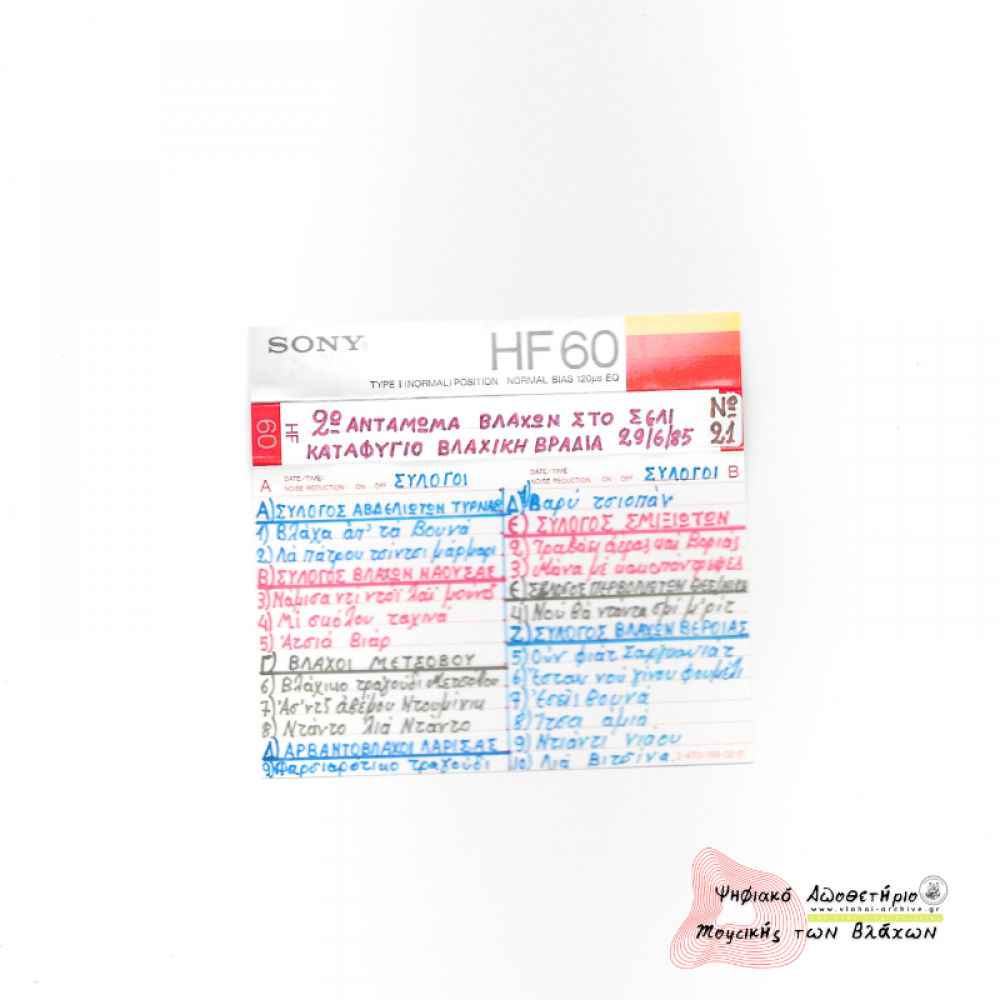 Η ηχογράφηση είναι από το 2ο αντάμωμα Βλάχων Βέροιας στο Σέλι στις 29 Ιουνίου 1985.